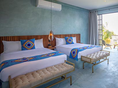 Enjoy an intimate atmosphere in our Master Balcony Suite, designed for magical moments. Sleep late in your super-comfy king bed and let us bring breakfast to your room. The spacious, modern bathroom has a rain shower, double sinks and plenty of room for pampering.