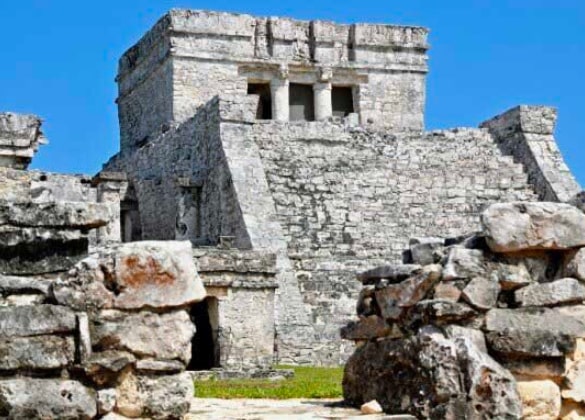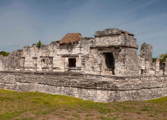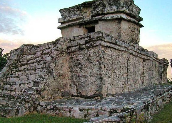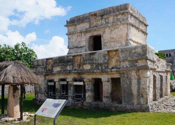 It is the one that preserves the most decorative elements in Tulum. It has two levels; the lower one consists of two temples, one inside the other, in which the decoration is concentrated.